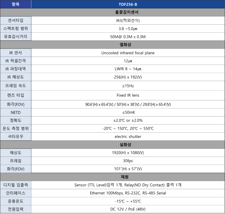 - 열화상 + 실화상 + 불꽃감지 일체형 카메라